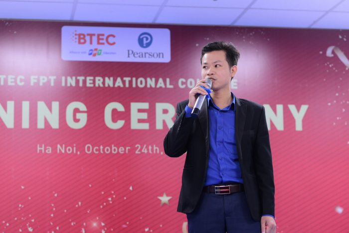 Tham dự Lễ khai giảng của nhà trường, về phía đại diện của nhà trường có ông Vũ Hải Long – Giám đốc Cao đẳng Quốc tế BTEC FPT Hà Nội, ông Bùi Duy Linh – Trưởng phòng đào tạo và ông Kiều Quang Thắng – Trưởng phòng tuyển sinh.